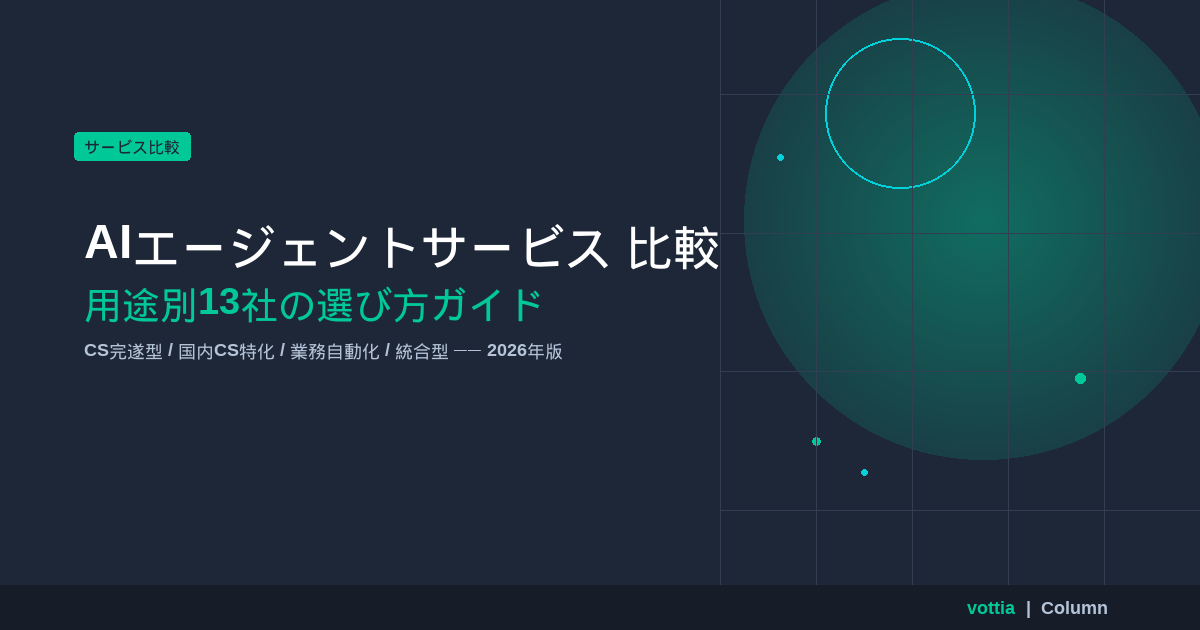 AIエージェントサービスの市場が2026年に急拡大しています。CS・業務自動化・統合型など選択肢が増えた今、AIエージェントサービスの比較は競争力を左右します。本記事では、海外から国内まで13社を4カテゴリで比較します。