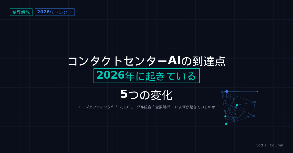 コンタクトセンターのAI活用は、2026年に大きな転換点を迎えました。これまでの「実験的な導入」から、「業務基盤」としての本格運用へと移行しつつあります。