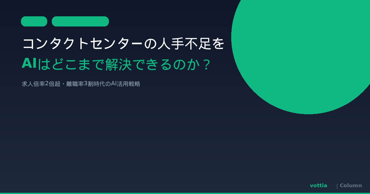 コンタクトセンターの人手不足は、求人倍率2倍超・新人離職率3割という構造的な問題です。「採用を強化する」「時給を上げる」だけでは限界があります。